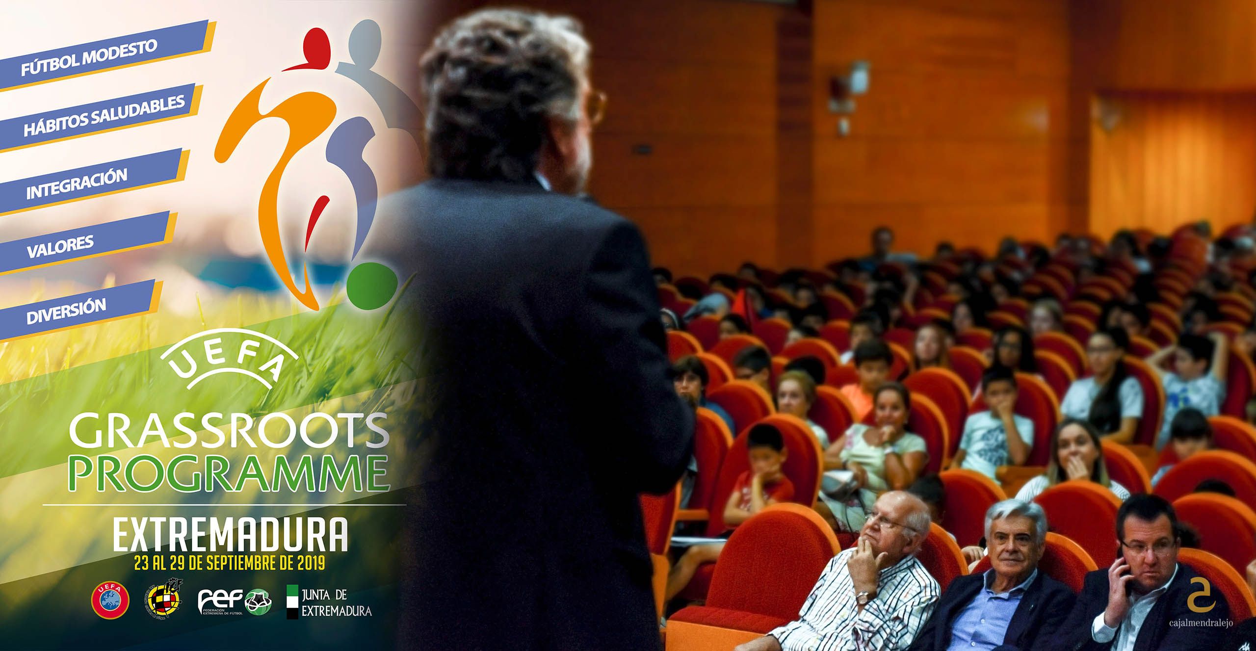 Durante toda esta semana, del 23 al 29 de septiembre, la Federación Extremeña de Fútbol está desarrollando un completo programa de actividades, en el marco del proyecto “UEFA Grassroots”, una iniciativa puesta en marcha por el máximo organismo del fútbol europeo con el objetivo de impulsar el fútbol modesto en todos sus ámbitos. UEFA Grassroots, adjudicado en exclusiva a la FEXF por parte de la Real Federación Española de Fútbol (RFEF), se enmarca a su vez dentro de la “Semana Europea del Deporte”, y llevará multitud de actividades relacionadas con el fútbol a distintos puntos de la región extremeña. Habrá torneos de fútbol y fútbol sala base, fútbol femenino, campeonatos de E-Sports y Fútbol Freestyle, juegos de habilidad, charlas sobre valores y buenos hábitos, captación arbitral, actividades inclusivas con discapacitados y centros penitenciarios y hasta un torneo de fútbol con bolas hinchables, todo ello con la participación de clubes, escolares y todas aquellas personas que deseen unirse a los eventos programados.