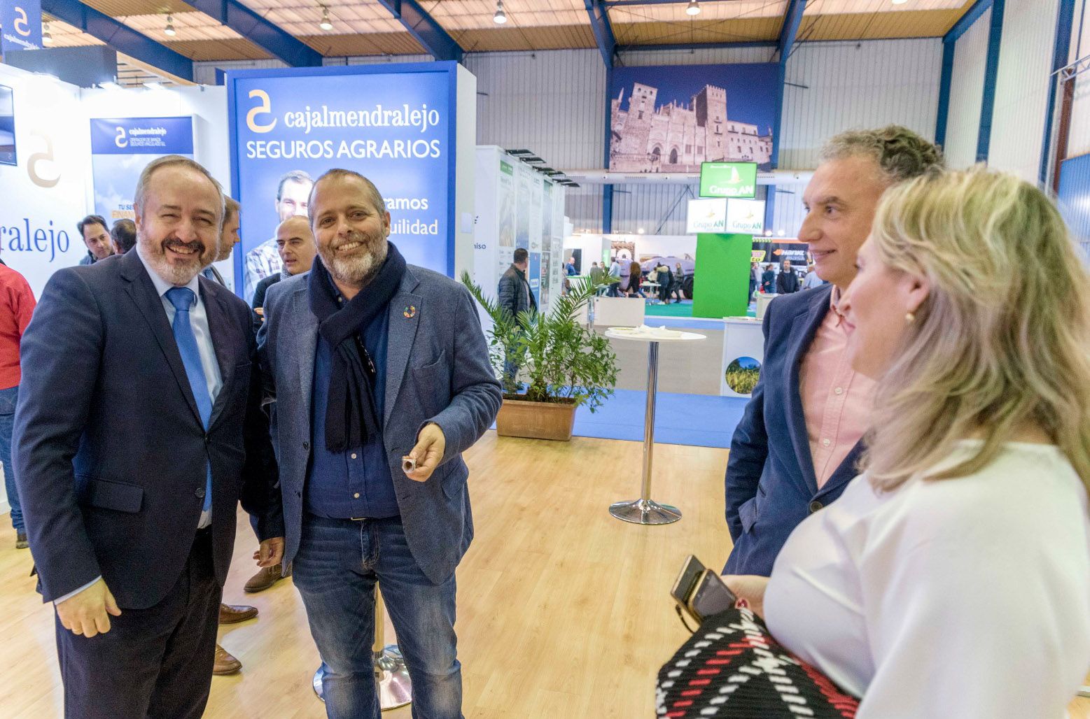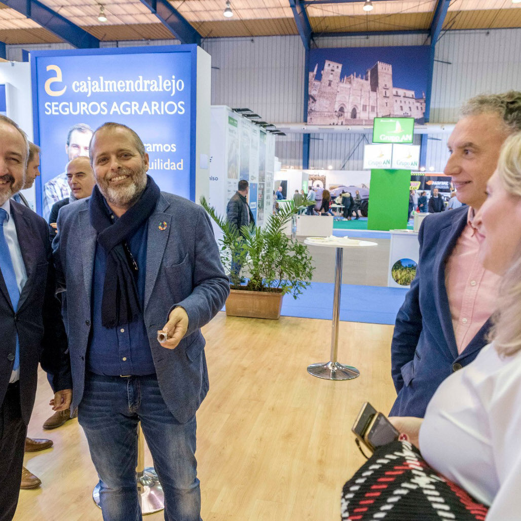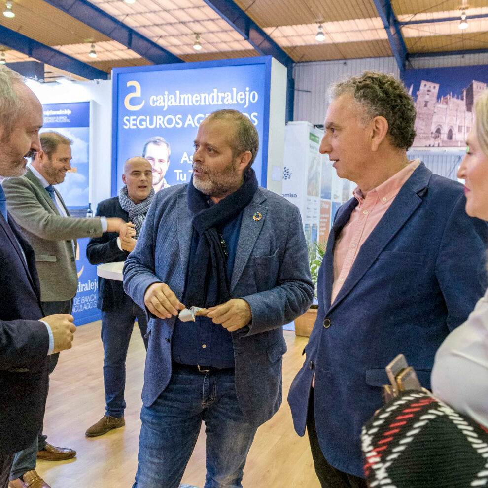 En la jornada de clausura de la XXXII edición de AGROEXPO recibimos en el estand de Cajalmendralejo la visita del Consejero de Economía, Ciencia y Agenda Digital, Rafael España, que estaba visitando la feria junto al Alcalde de Don Benito, José Luis Quintana Álvarez y la directora general de FEVAL, Susana Cortés.