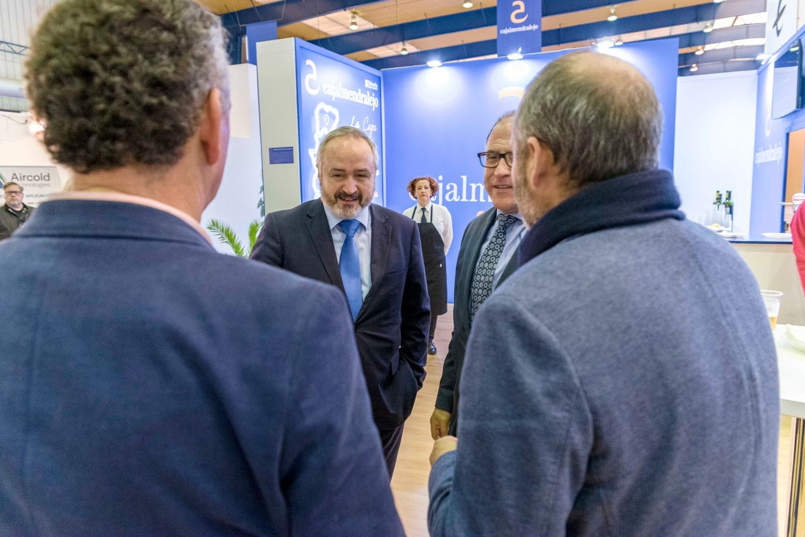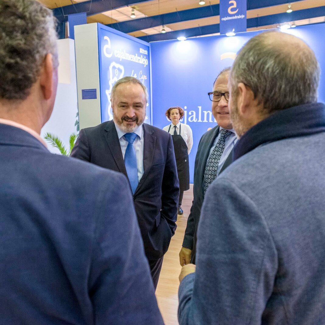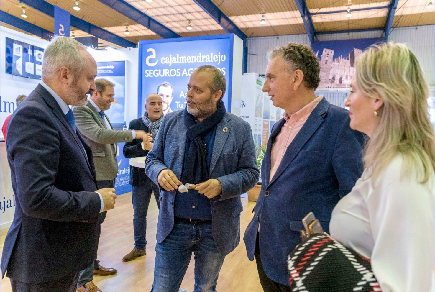 En la jornada de clausura de la XXXII edición de AGROEXPO recibimos en el estand de Cajalmendralejo la visita del Consejero de Economía, Ciencia y Agenda Digital, Rafael España, que estaba visitando la feria junto al Alcalde de Don Benito, José Luis Quintana Álvarez y la directora general de FEVAL, Susana Cortés.